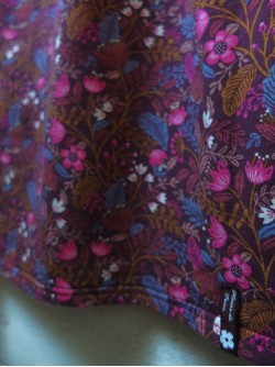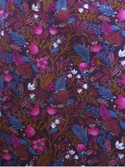 Le motif représente de petites fleurs rose sur un fond bordeaux.