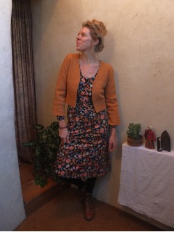 Les manches sont 3/4 et la robe s'arrête sous les genoux.